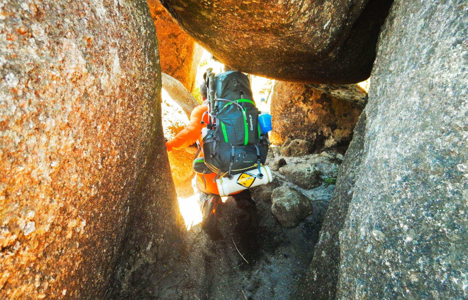 Ao longo da travessia topamos com bastante congestionamento de pessoas, isso devido aos pontos de escalaminhadas. Em um deles tem uma corda já bem gasta e fraca para içar as mochilas e auxiliar na descida (essa corda deve estar lá à bons anos).