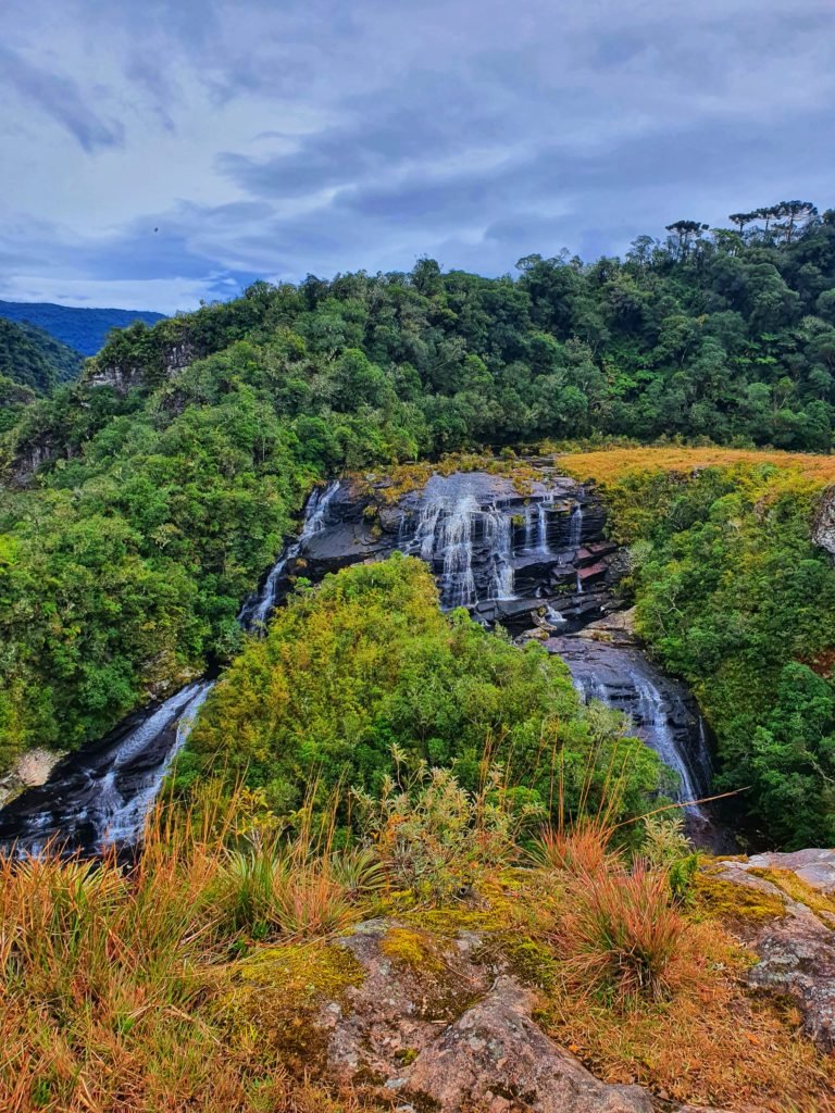 A quilometragem do segundo dia foi longa, cerca de 20km, mas foi belíssima. Contornamos um pedaço do Cânion Pedra Branca por ambos os lados, de onde foi possível uma cachoeira de cerca de 60 metros que ficava muito próxima de onde estávamos acampados, é também conhecida como Cachoeira Pedra Branca, mas da parte alta, não devendo ser confundida com a outra Cascata da Pedra Branca, que fica sim na continuidade destas mesmas águas, mas fica mais para baixo do Cânion, sendo acessada facilmente pelo município de Itati.