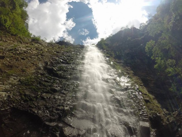 Logo após o Canion do Gorila, chegamos na primeira cachoeira. Não era muito alta, mas tinha um bom poço. De qualquer forma, era preciso escalar o barranco ao lado dela para chegar na cachoeira principal. O fizemos com a ajuda das raízes das árvores ao redor. No topo já era possível ver o alto da enorme cachoeira adiante. Mais alguns metros e estaríamos lá.