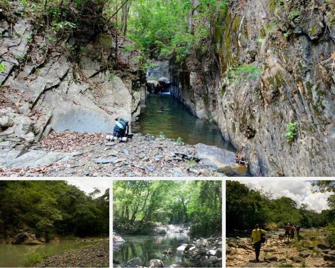O pasto adentra por certa distância no vale, mas aos poucos vai cedendo lugar ao cerrado. Lá na frente, após alguns quilômetros de caminhada, tomamos uma bifurcação à direita. Era a etapa final, mas um tanto demorada. Andar pela água era obrigatório. Para a nossa surpresa, a cor da água não tinah sido muito influenciada pelas chuvas recentes: elas estavam com ótima transparência. Presseguimos por horas no leito, eventualmente parando em pequenos poços e passando por uma mata ciliar bem preservada. Tudo estava indo bem até que tivemos um inesperado e perigoso encontro: uma cascável das mais gordas prestes a dar um bote.