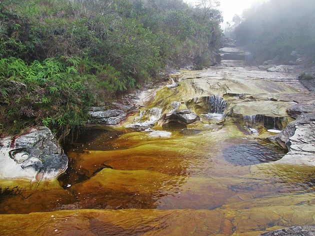 As águas são de uma tonalidade sem igual, translúcida e as pedras dão um efeito alaranjado lindo demais! Mas, pensa em uma água gelada, o bom que depois de alguns minutos você não sente nada, o corpo adormece por causa do frio rsrsrsrs. O tempo deu uma trégua durante o dia, um pouco mais quente e em alguns momentos momentos com céu limpo, conseguimos visualizar até um arco-íris na Cachoeirinha.
