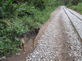 Um cachorrinho, muito simpático, nos acompanhou até chegar na cidade, talvez tenha pensado que três doidas que caminham em um país desconhecido a noite precisasse de apoio, ele estava certo...rsrsrs.... Assim que chegamos ele se despediu.