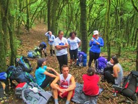 Chegamos na bifurcação para a Pedra da Onça por volta das 13:00, algumas pessoas pararam para descansar e segui com uma parte do grupo a trilha abaixo(sentido SFX que faríamos no dia seguinte) para verificar os pontos de água, aproximadamente 20min(ida e volta) da bifurcação até o primeiro ponto de água na descida.
