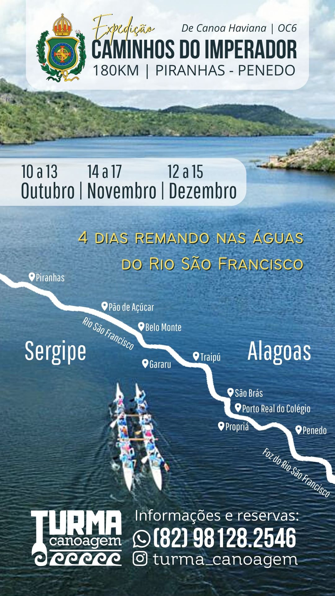 Vamos refazer os caminhos do Imperador pelo Rio São Francisco, com canoas havaianas ou polinésias, OC6. Serão 4 dias de aventuras! 3 datas!