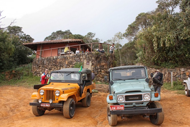 Após o almoço, subimos de jipe (R$ 150,00 para 1 a 5 pessoas) até a portaria, onde é paga uma taxa de entrada e uma de camping (R$ 12,50 e R$ 6,00 respectivamente na época).