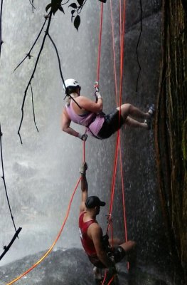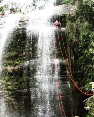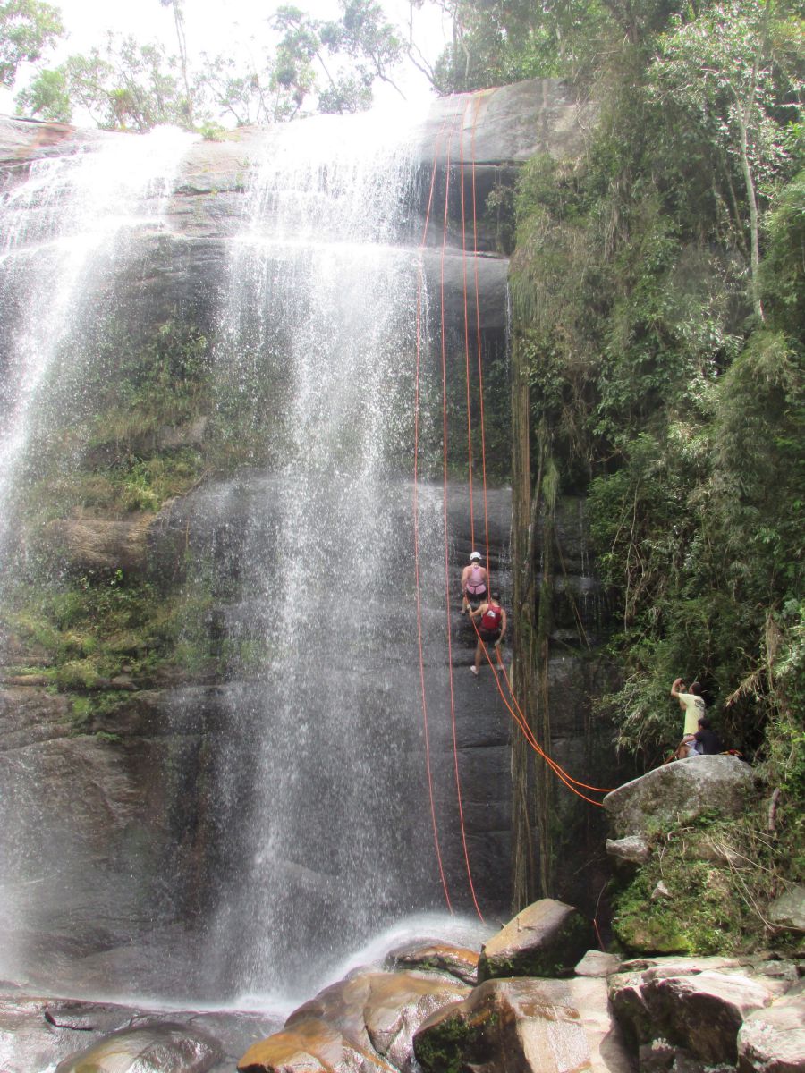 Primeiro rapel em cachoeira. Apavorante, muito bom. 😂