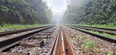 Cachoeira da antiga Usina na região de Colônia, Sp. Para chegar até ela, é preciso percorrer alguns quilômetros em ferrovias.
