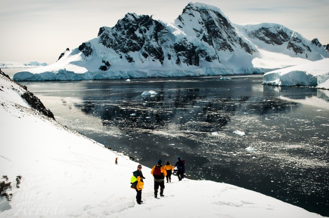 Por outro lado, gostei do pouco de experiência que tive com o grupo, já que gosto de caminhar e realmente essa atividade extra te leva um pouco além do convencional. Enquanto o grupo do barco desce em determinado ponto e os passageiros de kayak seguem no zodiac para outra região, os snowshoers também seguem para outro ponto de início, de onde partem para uma caminhada mais longa com os equipamentos específicos para caminhar na neve, ossnowshoes ou raquetes de neve.