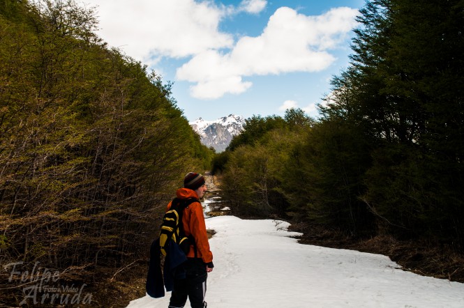 Todavía no sabíamos que nos esperava arriba, descansamos un poco (aquí la subida se hizo bien fuerte) y seguimos buscando la Cumbre. Inicialmente buscavamos la Laguna Holanda y la Laguna Submarino con su cascada, pero en este punto desistimos de ellos y solo queríamos subir lo máximo posible. La esperanza era también lograr a ver el Canal Beagle desde la cumbre de estas montañas que se formavan, peró nos deparamos con un profundo valle nevado, en el cual creímos que se encuentrase la Laguna Holanda.