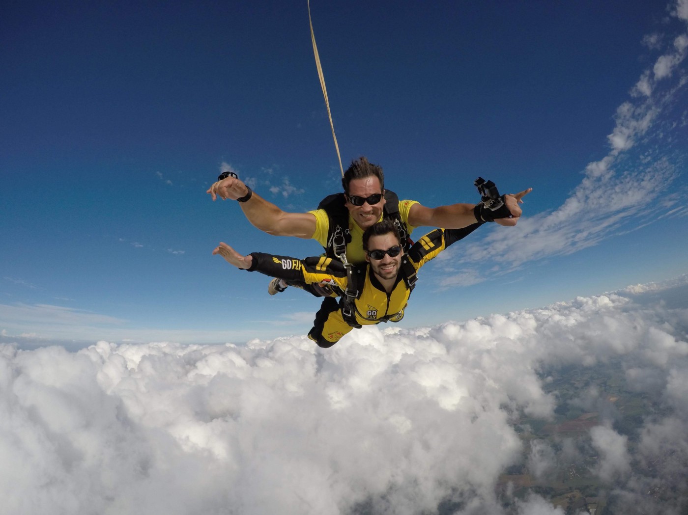 E por ser meu primeiro salto e tbm meu aniversario decidimos optar pelo melhor pacote de filmagem onde alem das imagens da handcam vai tbm um cinegrafista para filmar tudo dês do embarque até a aterrizagem, cantaram é parabéns no avião :D, o salto em si não é tão caro o gasto mesmo vai nas filmagens, fotos e gastos de viagens mas a verdade é que vale cada centavo a partir da decolagem o avião sobe a uma altura de aproximadamente 13mil pés é aonde a adrenalina começa a subir por mais que o ambiente dentro do avião seja agradável e descontraído a ansiedade para saltar é enorme a sensação quando abre a porta do avião e vc salta com aquele visual incrível do sol por cima das nuvens é surreal e é aonde percebemos o quão magnifico é esse tal planeta terra em que vivemos.