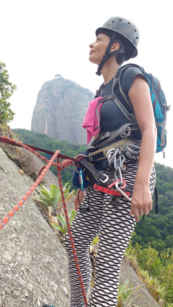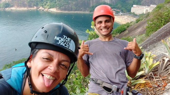Foi uma experiência sensacional. Anderson disse que eu o surpreendi pois tinha falado que tinha pavor, muito medo... e ele estava esperando alguém mais medrosa. Na verdade tive muito medo, sim. Para outros pode não ser uma via desafiadora, mas para mim foi um desafio muito forte. Mas sei que, além da minha determinação em enfrentar meu medo, eu consegui muito pelo incentivo e pela habilidade técnica do guia. Sobretudo, sua capacidade de empatia e seu alto astral contagiante contribuíram para a minha motivação. Fechei o ano com chave de ouro!