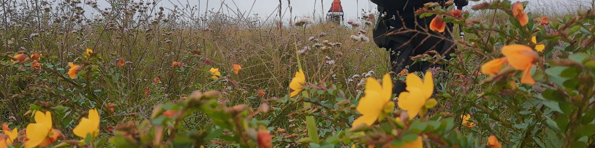 À direita, o riacho. Seguimos ele até um ponto de travessia, passamos por um charco e, na sequência subimos um morro, pra encontrar mais planaltos no espinhaço. Seguindo as flores, passamos por porteiras até que, lá na frente, o planalto parecia acabar. Você vê uma curva, entende que é o fim daquela ecossistema, e, lá dentro de você, sente um vazio, um questionamento do que vai ser daqui pra frente. Se tem algo que você não quer é sair dos palácios que tem no espinhaço.