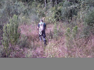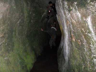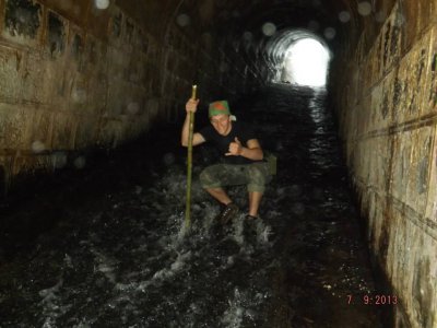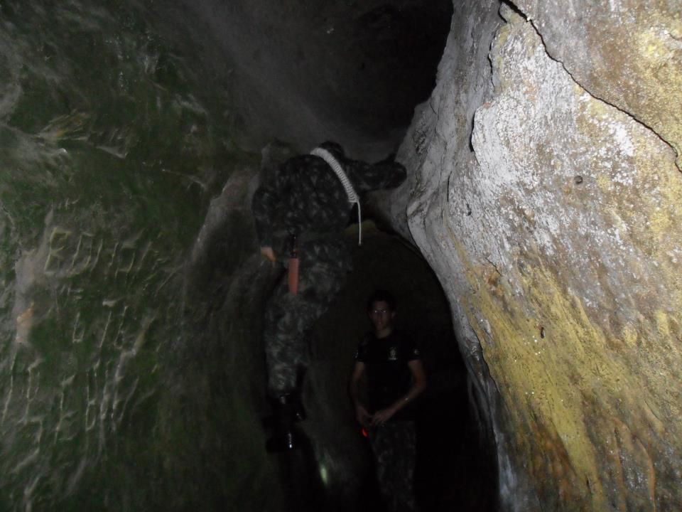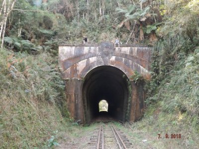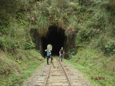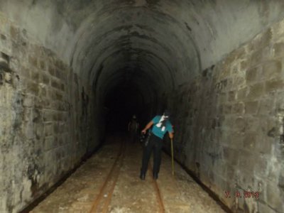 Trilha em uma antiga linha ferroviária com exploração de algumas grutas
