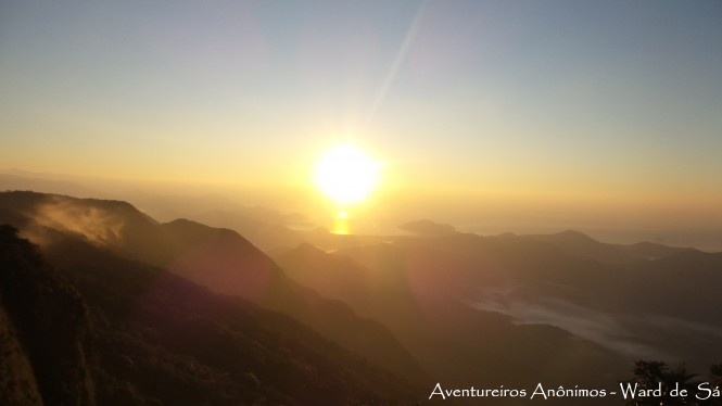 E mais um pouco e pouco mais, chegamos ao cume com um bom tempo de escalada, feito em 6hs e 30 minutos,eu fiz em 5hs e 30 minutos devido a ter que voltar ao início da trilha, mas chegamos juntos, aí o ânimo da galera voltou e começamos a montar acampamento na pequena área disponível, tudo acertado, pegamos um pouco de chuva na subida, mas tudo estava ficando cada vez melhor, eis que o céu se abre, neblina soprada pra longe pela brisa do mar e temos estrelas aos milhares...