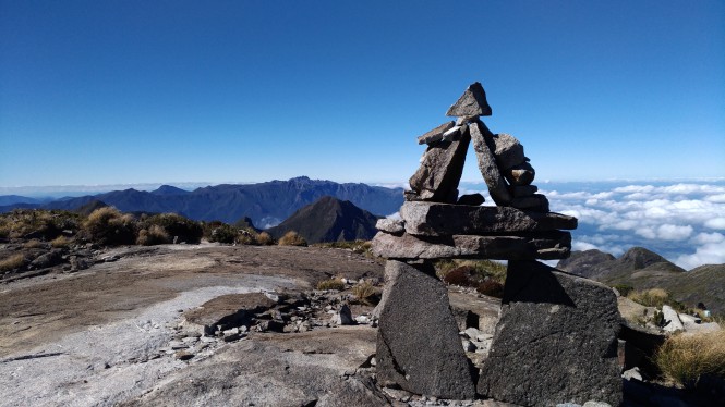 Logo nos recompomos e fomos montanha acima novamente, através de degraus cheios de lama, pedras escorregadias, novamente não sei de onde a Mãe Natureza me enche de energia e renasço novamente , com licença Boney, preciso descarregar essa energia e sigo montanha acima passo a passo quase sem descanso seguido logo atrás pelo Alan , mais uma vez, cume atingido , pra mim aquele também era uma novidade não conhecia e achava engraçado uma hora estava no Estado Maravilhoso Rio de Janeiro, outra hora estava no hospitaleiro e belo estado de Minas Gerais e por fim no meu grandioso estado , terra de bandeirantes gente corajosa e trabalhadora a que tenho orgulho de ser filho, São Paulo !
