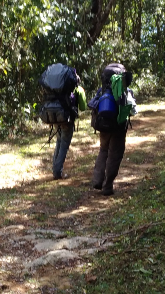 Seguimos em caravana tudo misturado, grupos dos Trilhadeiros , com o Fulvioooo, Arie, Case e algumas companhias de turismo com seu Sherpas sempre muito simpáticos e prestativos, gente que vive da montanha. Mesmo sendo o último dia não foi fácil , descidas difíceis , um sobe e desce danado e claro mais uma montanha pra subir Alto dos Ivos, essa era pra me despedir , estava bem alimentado e descansado subi bem, fiquei atrás de um garoto Sherpa, me deu até dó de ver aquele rapaz que andava curvado cambaleando de um lado pra outro com uma carga de 45 kg, nas costas , a cada passo parava pra respirar pois a subida era forte e como forma de respeito e admiração permaneci atrás dele até o final da subida , garoto trabalhador que mora na cidade de Cruzeiro em SP, e conversamos um bocado , a cada passo e degrau de subida eu achava que ele não ia conseguir e ficava imaginando como poder ajuda-lo, engano meu, ele subiu até o final, quando chegou em um trecho de escalaminhada ele parou pra respirar um pouco e beber água, como estava muito cheio eu tomei a frente e segui o meu rumo montanha acima, cume atingido encontro Diogo, Talita (com respeito parece uma formiga atômica, rápida , forte e bonita) e Adriane seguimos num sobe e desce danado pelos corcorutos a frente e novamente o meu mestre a frente “Bambuzal”, pra deixar marcado pro resto da vida , “ que devemos nos curvar e ser flexíveis quando necessários, e romper os obstáculos da vida quando assim se fizer necessário”.