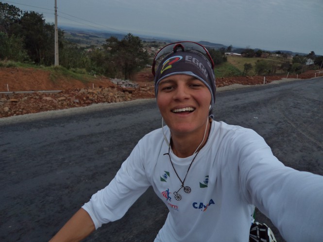 - Quantos kms você pedalava por dia? De 100 a 140 kms. Nunca foi menos ou mais.