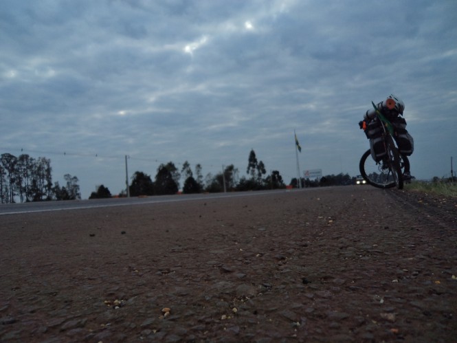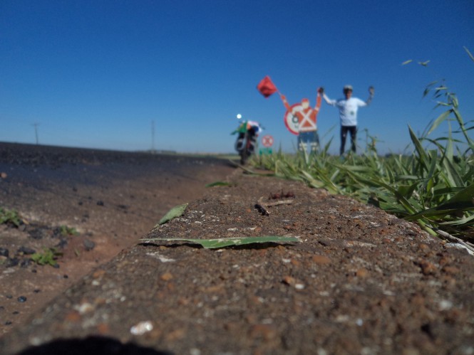 E novamente, enfrento um forte vento contra... Mas isso não me desanima nenhum pouco, pedalo mais lentamente e contemplo ainda mais o belo. Era um sábado, então o trânsito estava muito tranquilo, a região para chegar até Mâmbore é isolada. Por volta das 10 horas, paro no meio do nada para fazer um lanche.
