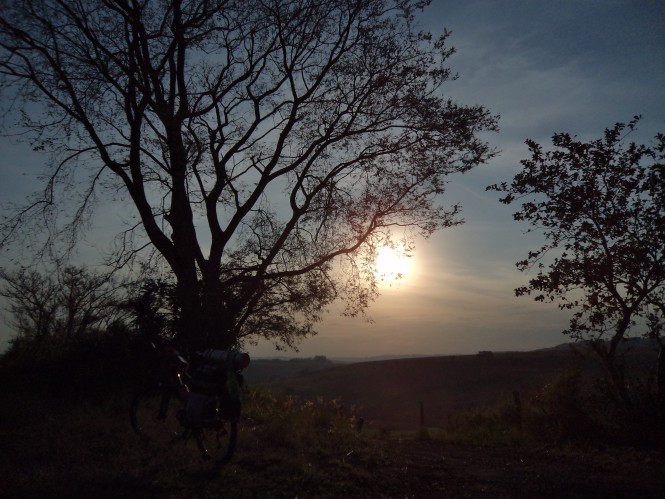 Os cachorros estranharam minha presença com a bike e a barraca, então eles me acordam várias vezes durante a noite, mas chamo pelo nome deles e se calaram (um deles que virou meu amigo se chamava Pirulito), tirando isso, tive uma boa noite de sono, bem protegido do frio.