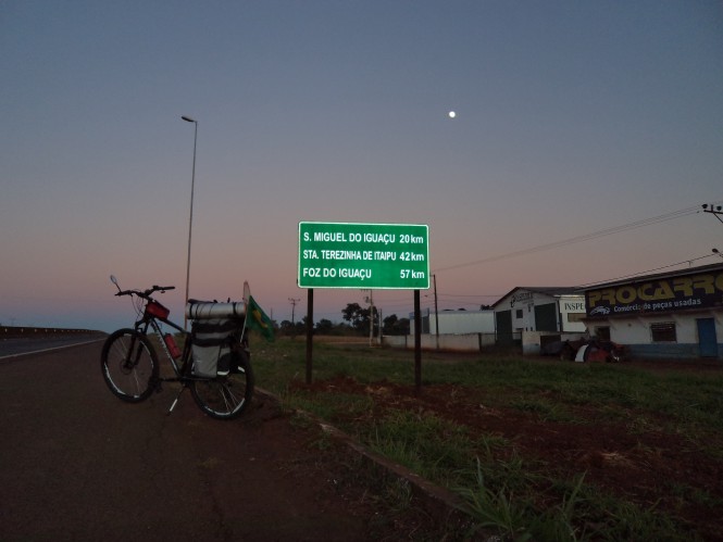 No dia 19 de julho de 2016, após anos de planejamento e vontade de realizar um sonho, saio, às 6:00 da manhã, rumo a Foz do Iguaçu-PR. Meu principal objetivo com esta viagem, além de matar a saudade de toda a minha família de Foz, era colocar toda aquela vontade que eu tinha de sair um pouco do meu ambiente/sociedade. No dia anterior a viagem, preocupo-me com o tempo, pois o dia inteiro fora nublado e na madrugada chovera. Mas, não desanimei, pois a previsão me dizia que não choveria nos próximos 4 dias. Então dou um grande abraço na minha família (pai, mãe e irmã), faço minha oração, e vou... Minha ideia era sempre, ao decorrer da viagem, contemplar o nascer e o pôr-do-sol. Então, sempre saí das cidades onde acampei por volta das 06 ou 07 horas e pedalava até as 18:00 ou 19:00. Foi um total de 870 kms e 68 horas pedaladas...