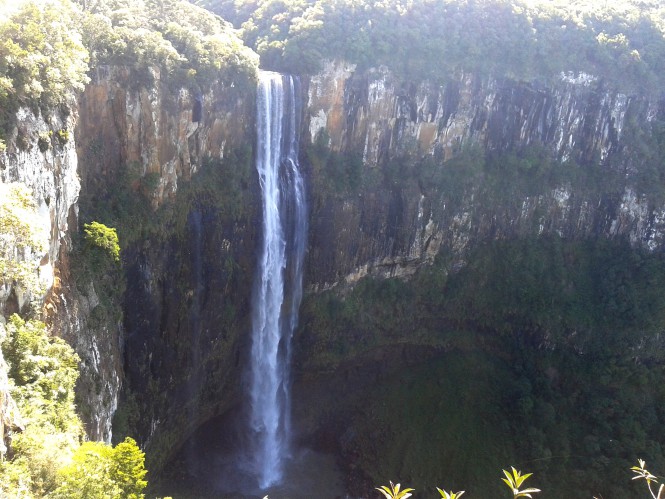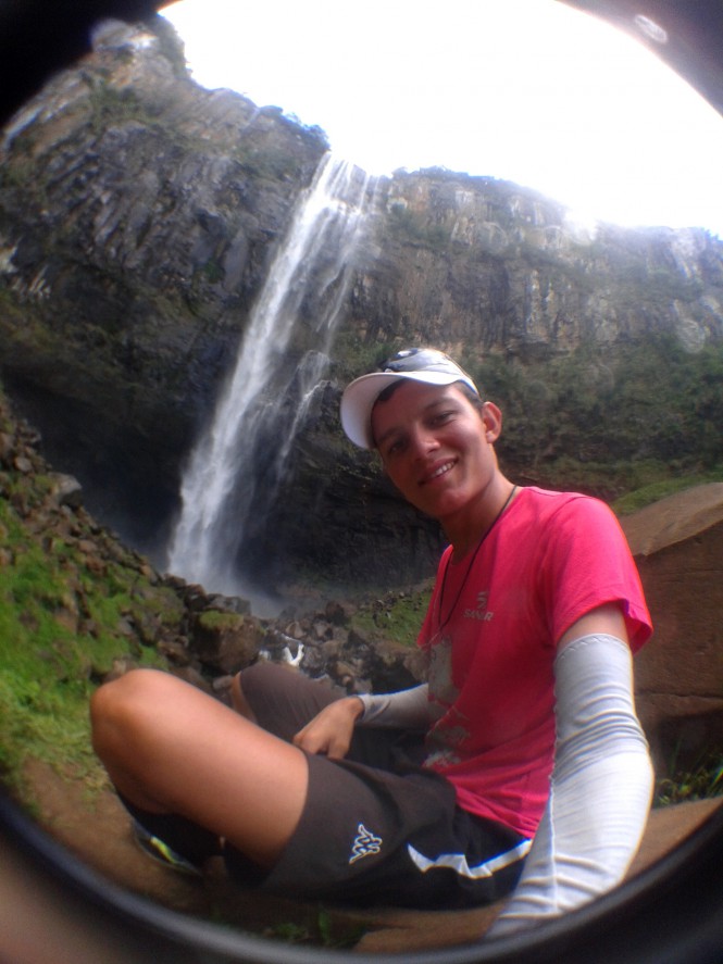 No quinto dia de viagem visitei o Salto São Sebastião e Mlot, ambos tem mais de 100 metros, fica um de frente para o outro, mas o mais incrível é que são de rios diferente, ou seja, duas cachoeiras uma de frente à outra de dois rios diferentes, coincidência??? Após a água descer, forma-se então um único rio, que mágico isso!!! Faço uma trilha também menos extensa que o a do São Francismo, mas difícil igual, e após terminar me deparo com essas maravilhas: Crédito da foto para o amigo que fiz por lá: Thiago do Vamos Desbravar, e como ele diz: ''Surreal esse lugar''.