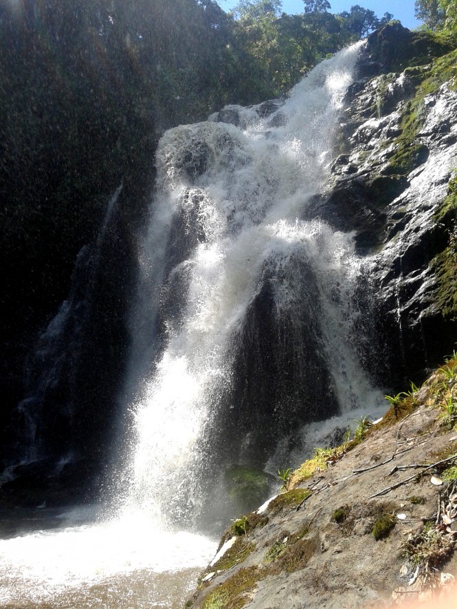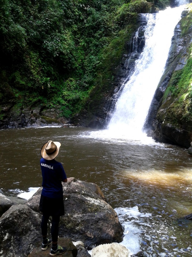 E após fazer um almoço, desço para a base do Salto: outro desafio. Já eram 15:00 h e o percurso é muito difícil, demorei cerca de 70 minutos para realmente chegar à base do Salto (muita descida e depois margeei o rio até a cachu). Naquele horario não é comum alguém descer lá, por isso não encontrei ninguém pelo caminho, o declive é bem acentuado, exigindo muita concentração para não cair ou se perder. Chegando por lá, fiquei espantado com a imensidão do lugar, não tenho palavras para descrever esse paraíso! Então decido ficar um tempo curtindo a vibe do local e logo volto, demorei menos tempo para subir (50 min.) porque subi alguns trechos correndo.
