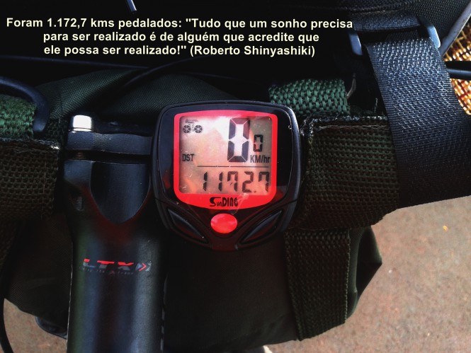 Aqui segue a foto do meu velocímetro com a distância total da viagem e uma mensagem: