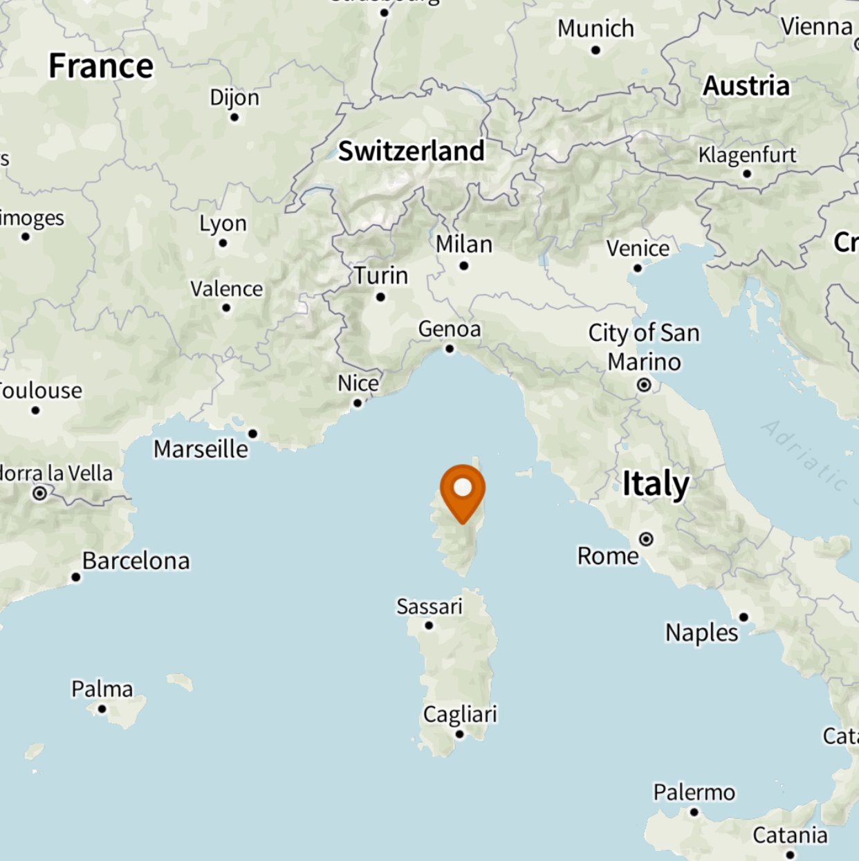 Corsica is an island situated in the Mediterranean Sea, southeast of French mainland, north of the Italian island of Sadinia, and west of the Italian Peninsula.